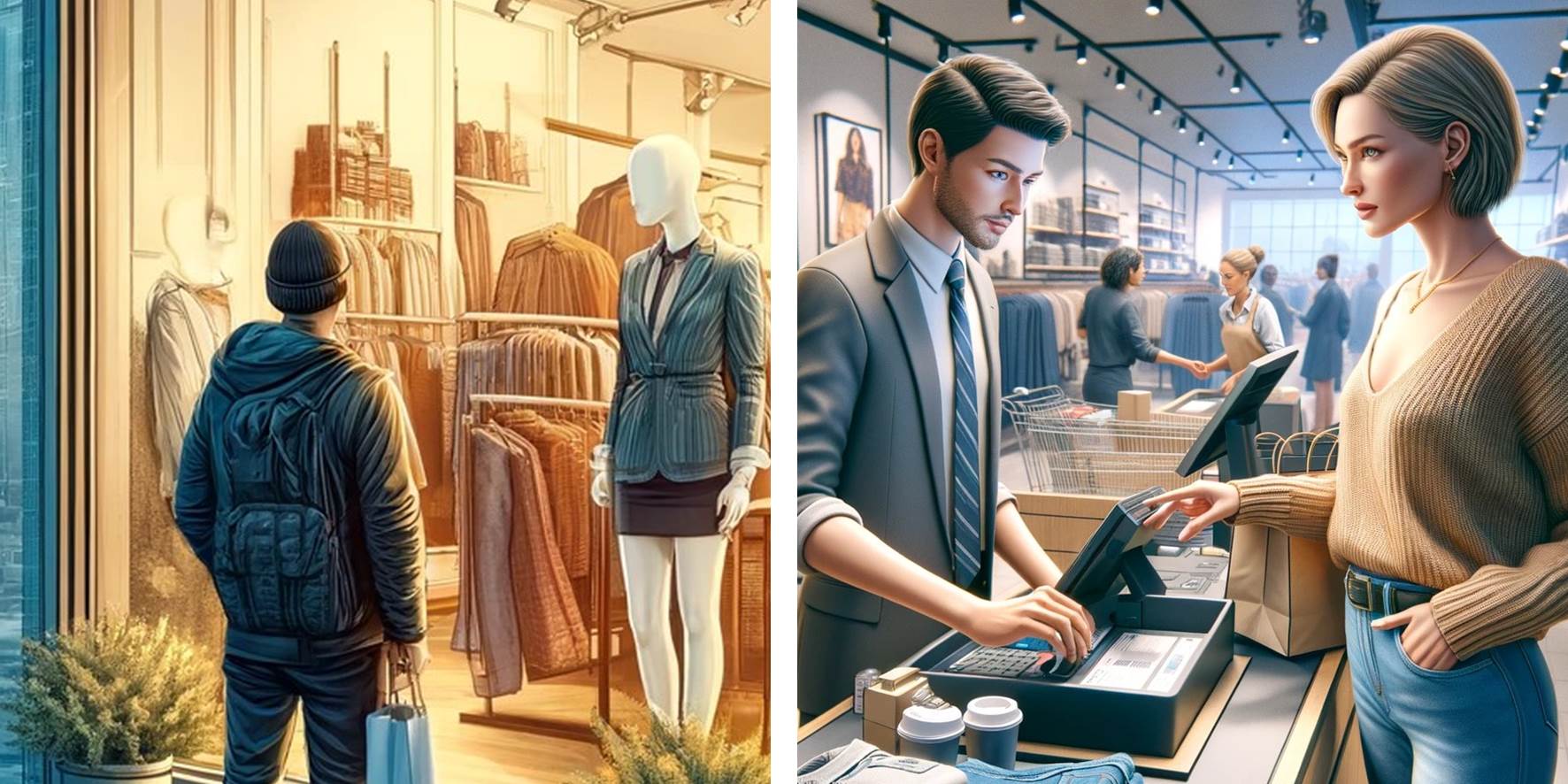 옷가게에서 손님은 2가지 유형이 있습니다. 옷을 구경만 하는 사람들, 흔히 아이쇼핑(window shopping)을 하는 사람들과 옷을 실제로구입하는 사람들로 구분됩니다.