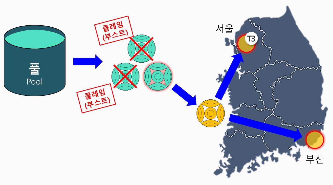 부스트 풀에 가득찬 에테르는 클레임을 한 유저에게 우선 배포되고, 남은 에테르는 T3랜드로 균등하게 뿌려집니다.