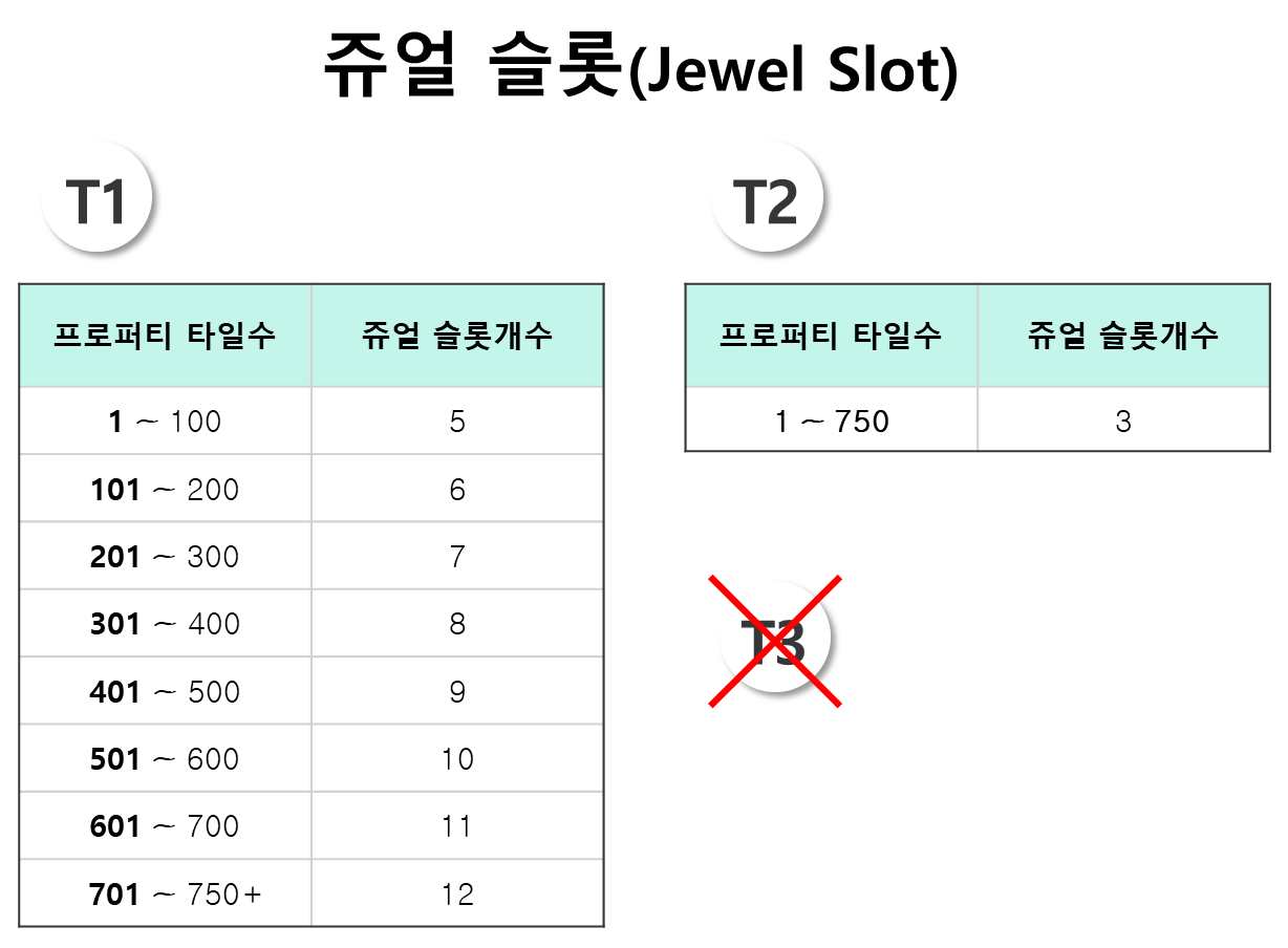 <mark style="color:green;">쥬얼 슬롯(Slot)에 쥬얼(Jewel)을 끼우면, 쥬얼이 가진 고유한 기능이 발현됩니다. 따라서, 활성화된 쥬얼 슬롯의 개수는 프로퍼티의 발전에 상당한 영향을 끼치게 됩니다.</mark>