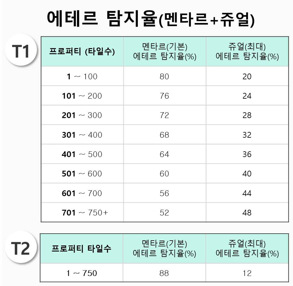 멘타르의 에테르 탐지율(%)과 쥬얼의 에테르 탐지율(%)을 합쳐, 최대 100% 에테르 탐지율을 얻을 수 있습니다.