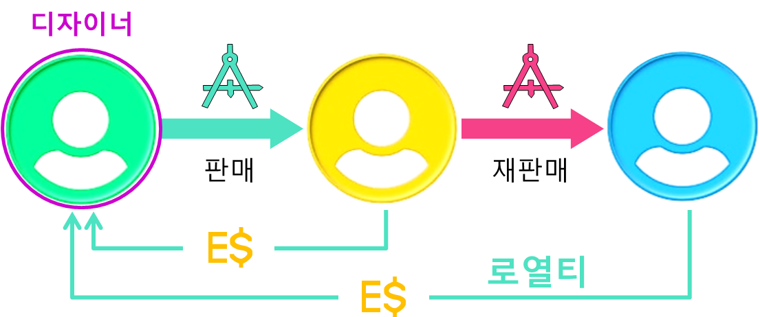 블루프린트/홀로빌딩을 처음 등록한 유저는 '디자이너'로 인정(accredited as Designer)되며, '디자이너'는 재판매되는 블루프린트/홀로빌딩에 대한 로열티 수익금을 받습니다.