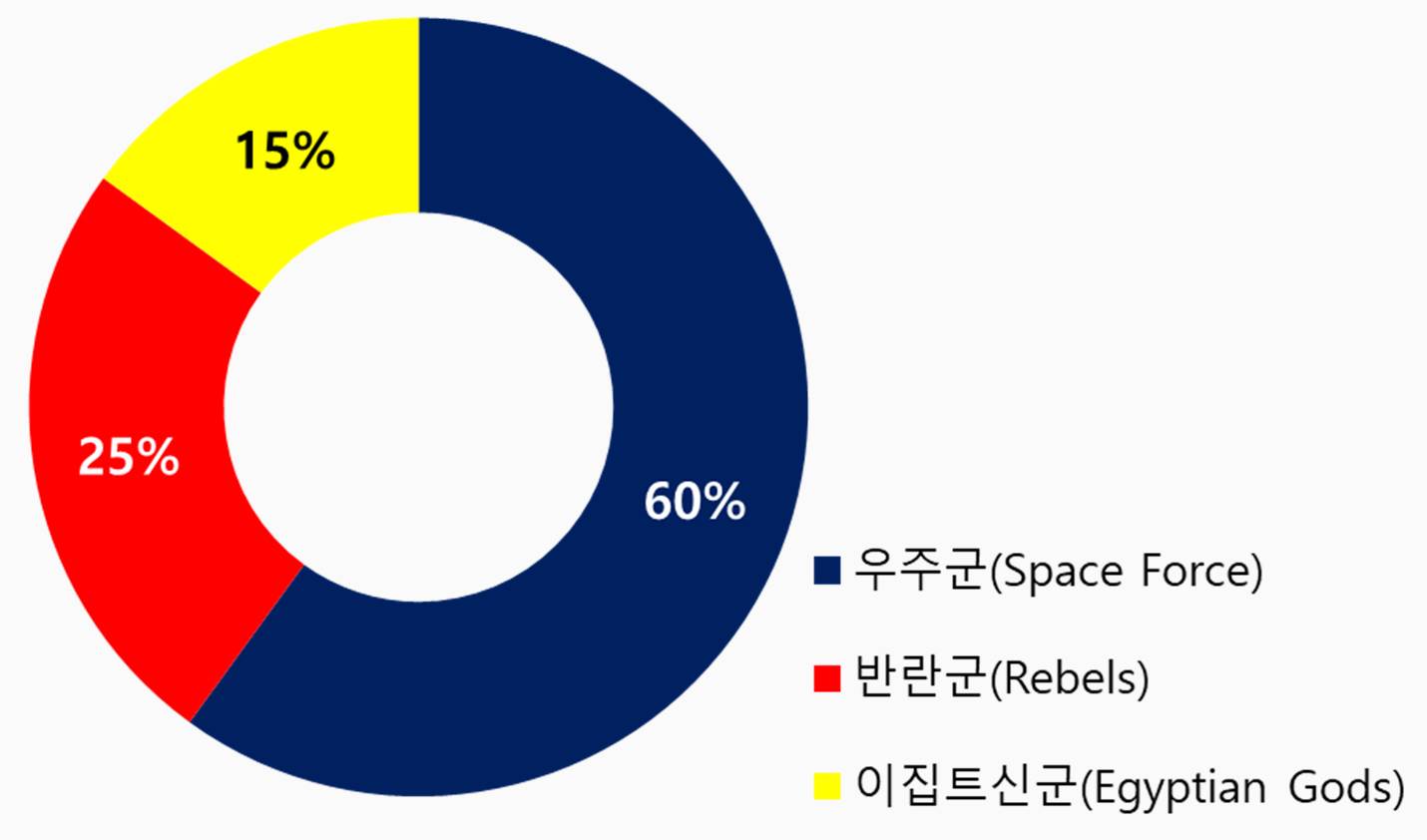 3파벌의 생성비율은 우주군(60%) > 이집트신군(25%) > 반란군(15%) 순입니다.