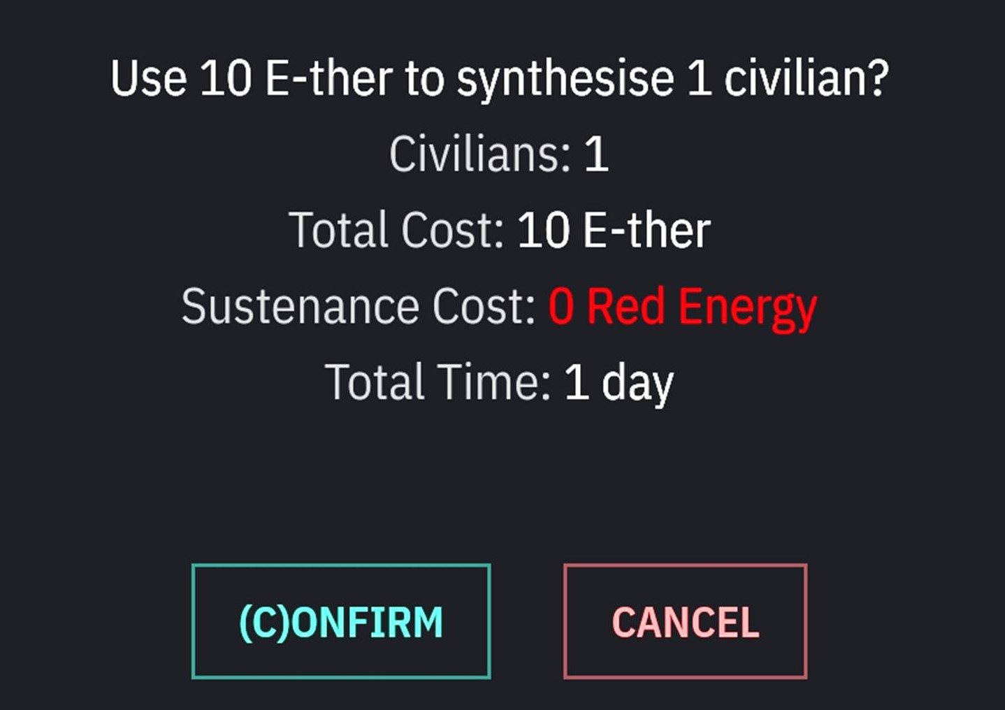 또한, 시빌리언의 생계(충성도 등)을 유지하려면 '레드에너지'가 필요합니다. (일주일마다 4레드에너지)