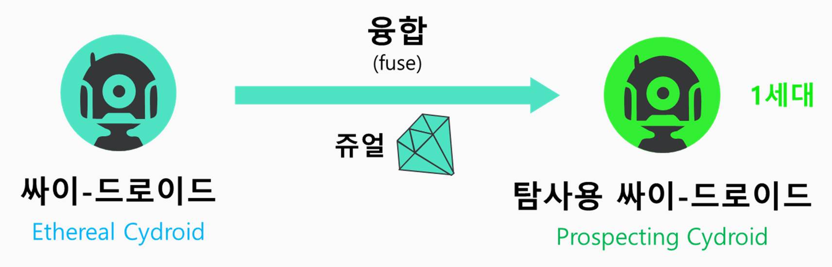 2.5에센스로 만든 (기본) 싸이-드로이드 중에서 특정 싸이-드로이드와 매칭되는 쥬얼을 융합(소모)하여 탐사용 싸이-드로이드를 만들 수 있습니다.
