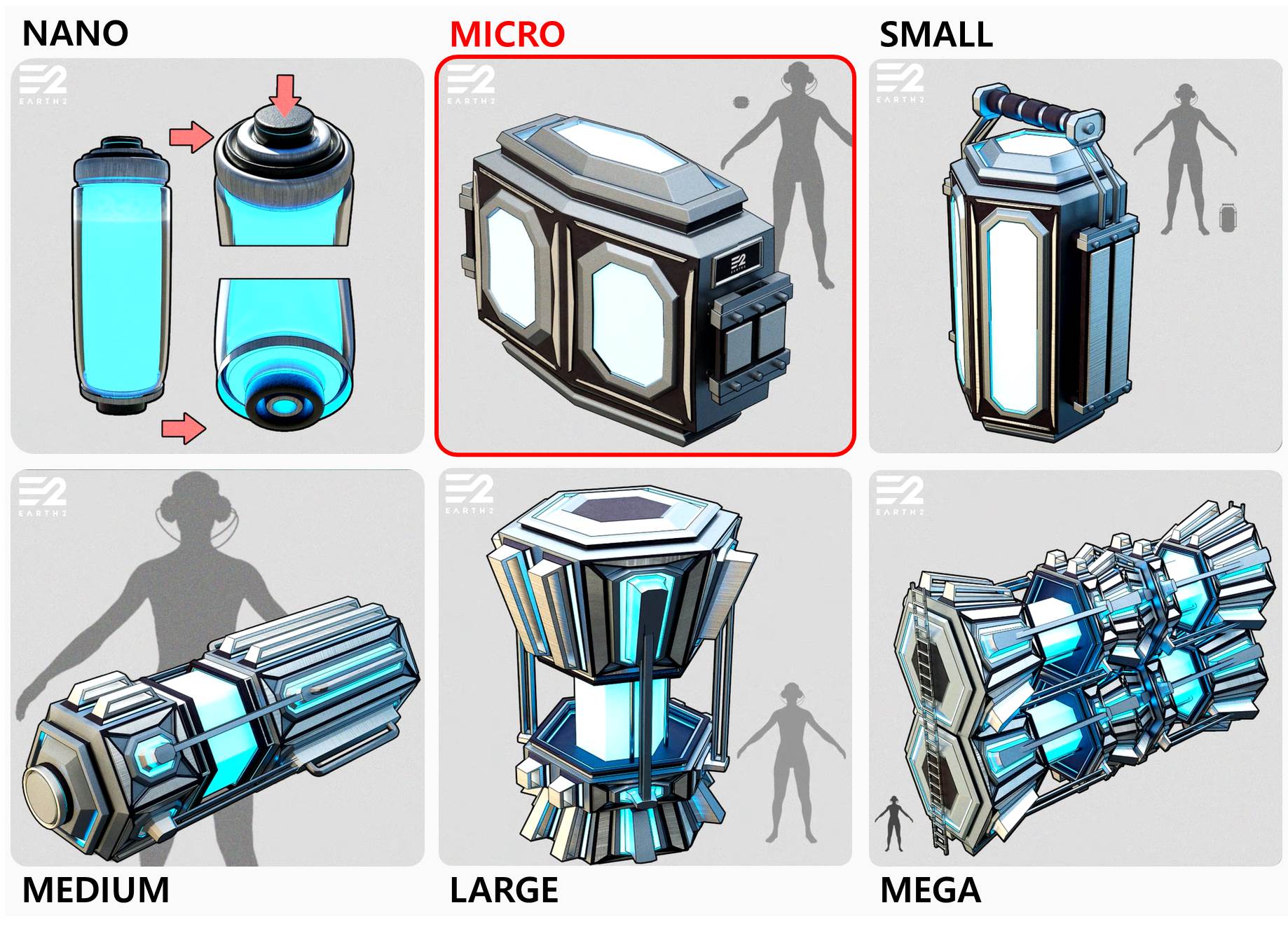 전지의 종류는 총 6가지가 소개되었으며, 기본 싸이-드로이드 전지(Power Cell)은 Micro크기입니다. 전지는 차량, 선박 등 앞으로 다양한 곳에 사용될 것으로 보입니다.