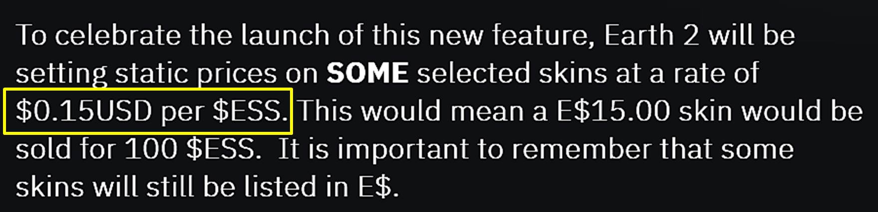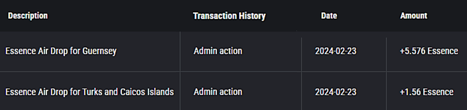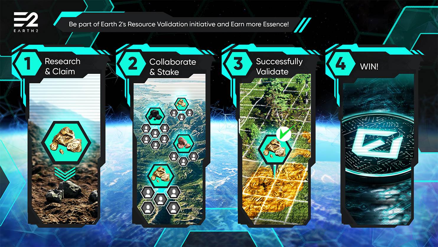 에센스는 ERC-20(이더리움) 유틸리티 토큰이며, 10억 개의 한정된 발행량을 가지고 있습니다. 에센스 토큰은 어스2 플랫폼에서 중요한 에너지원이자, 거버넌스(투표권) 입니다.