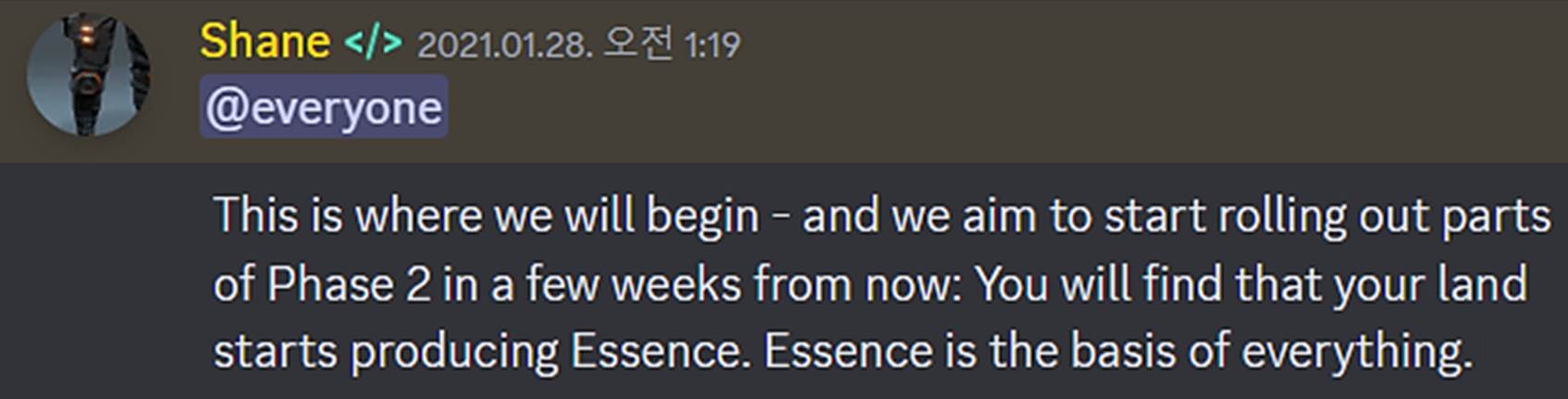 그리고 다시 한 번 분명히 말씀드리지만, 엘로우에너지는 직접 에센스로 (교환되는 것이) 아닌, 어스2 랜드로 교환될 지도 모르겠습니다. (..후략)